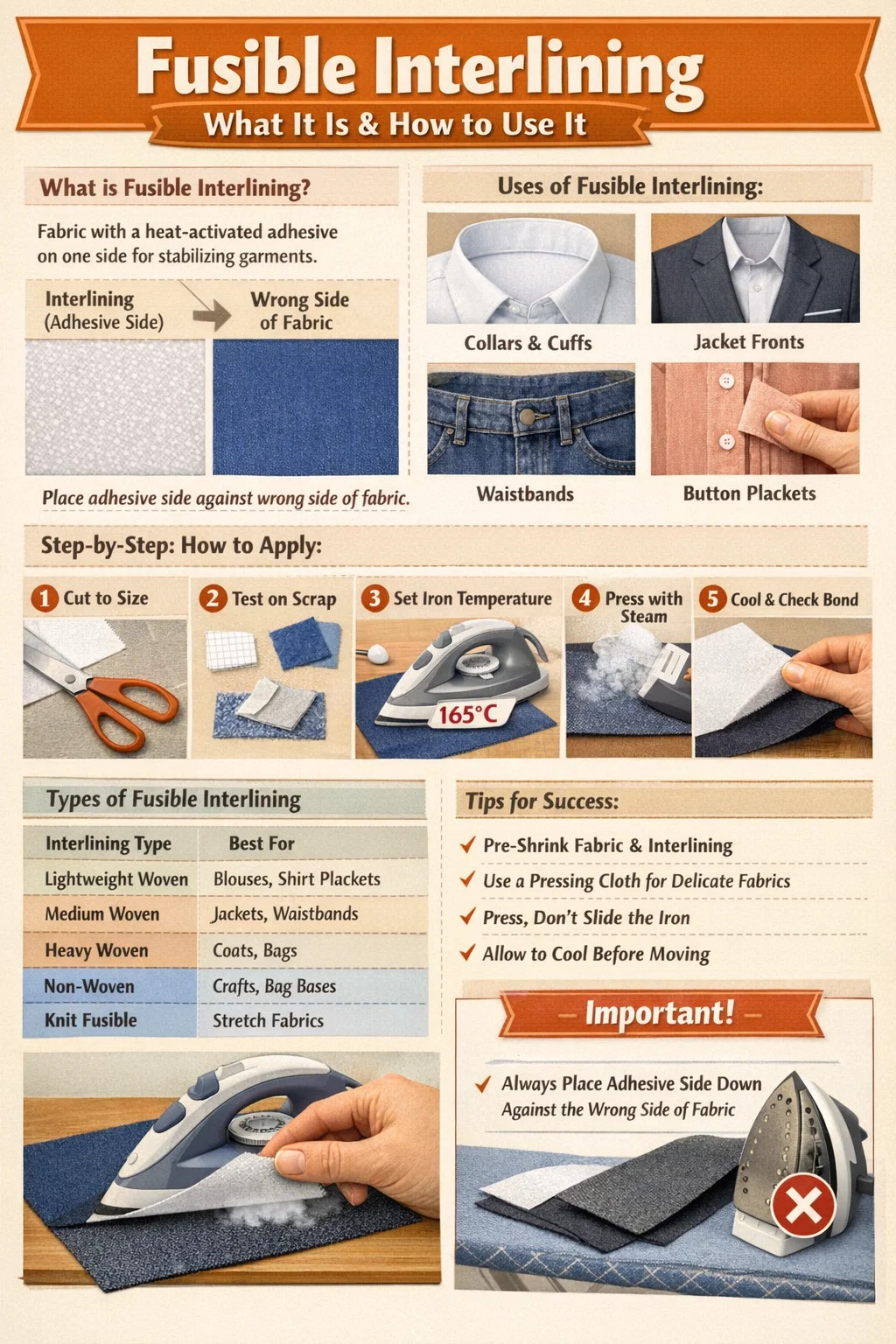 | Interline Type | Legjobb For | Fabric Match | Vas hőm |
