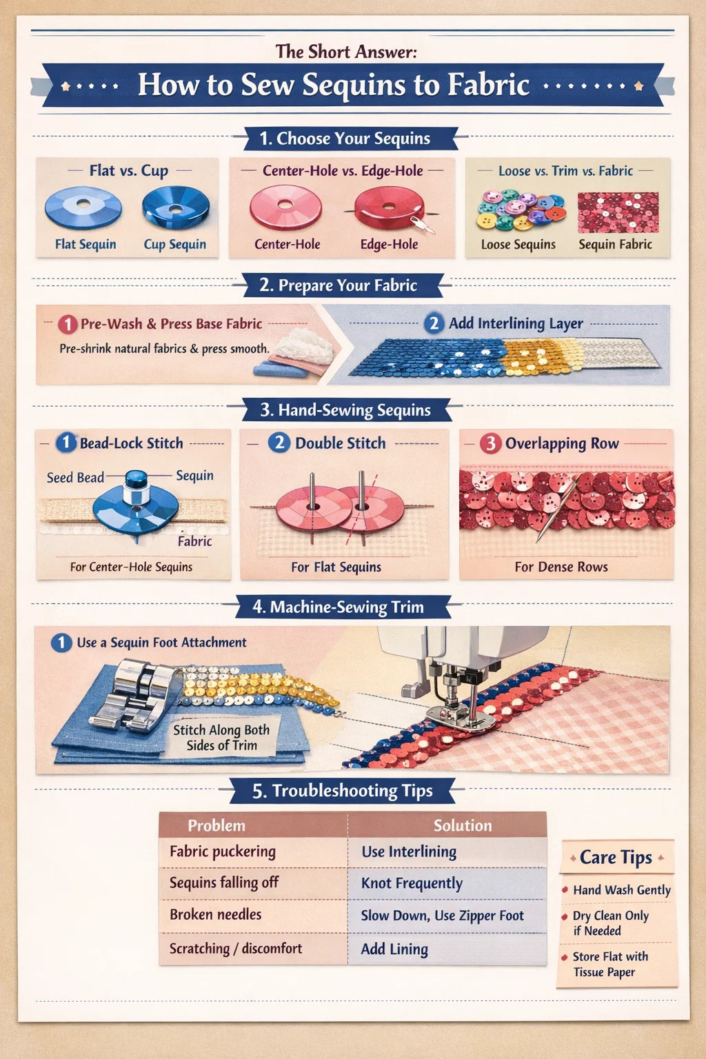 A rövid válasz: Hogyan varrjunk flittereket az anyagra